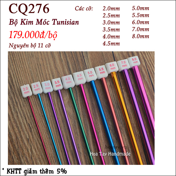Bộ kim móc Tunisian dài 25cm. Một bộ có 11 size từ 2.0 -8.0mm.