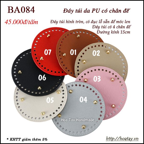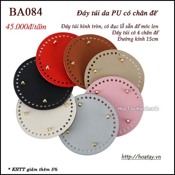 Đáy túi da PU có chân đế, Đáy túi hình tròn đường kính 15cm BA084