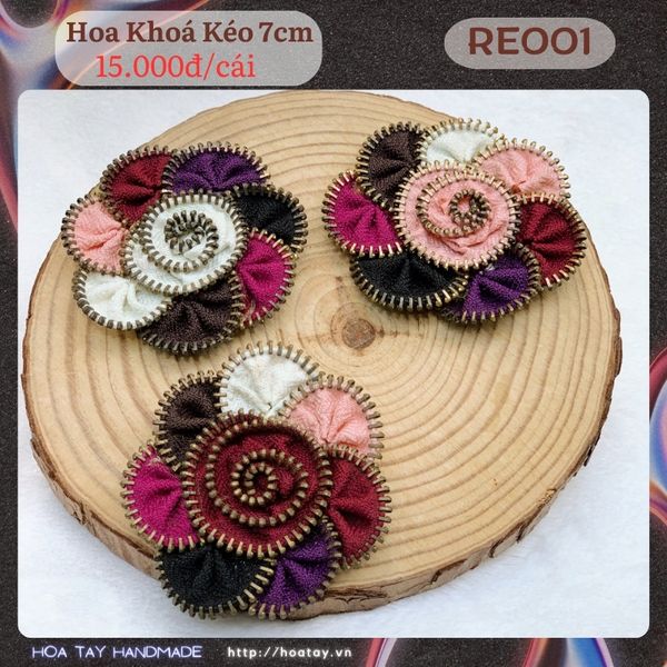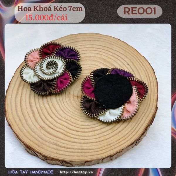 Hoa Khoá Kéo nhiều màu đường kính 7cm - phụ kiện trang trí RE001
