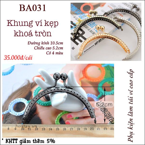 Khung ví kẹp bán nguyệt khoá tròn cổ điển BA031