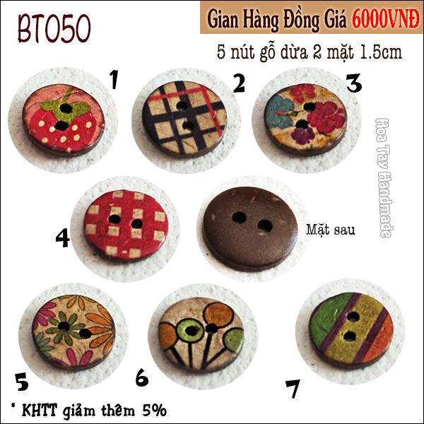 Nút gỗ dừa tuyển 2 mặt Vintage 15mm BT050