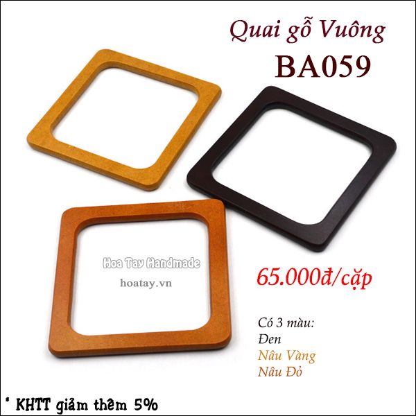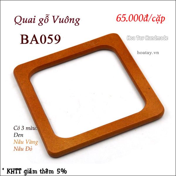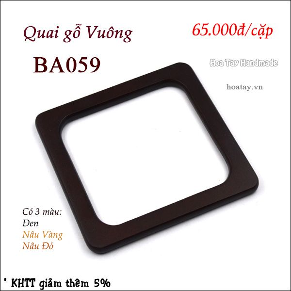 Quai gỗ túi xách hình vuông có 3 màu: màu đen, màu nâu đỏ, màu nâu vàng.