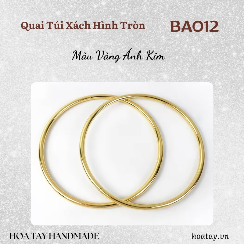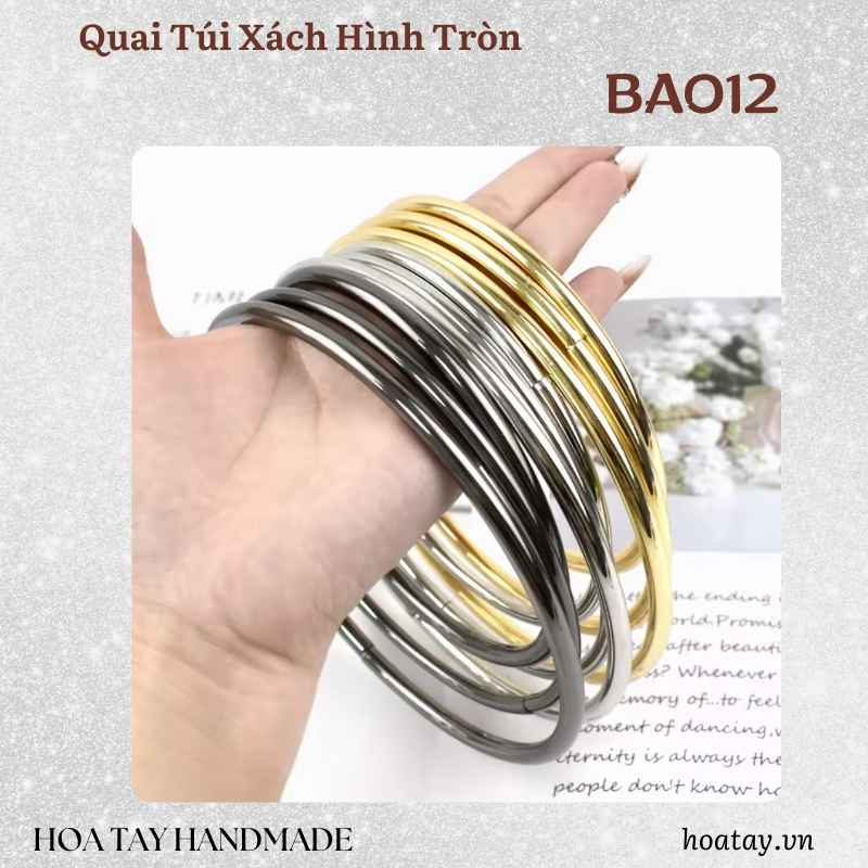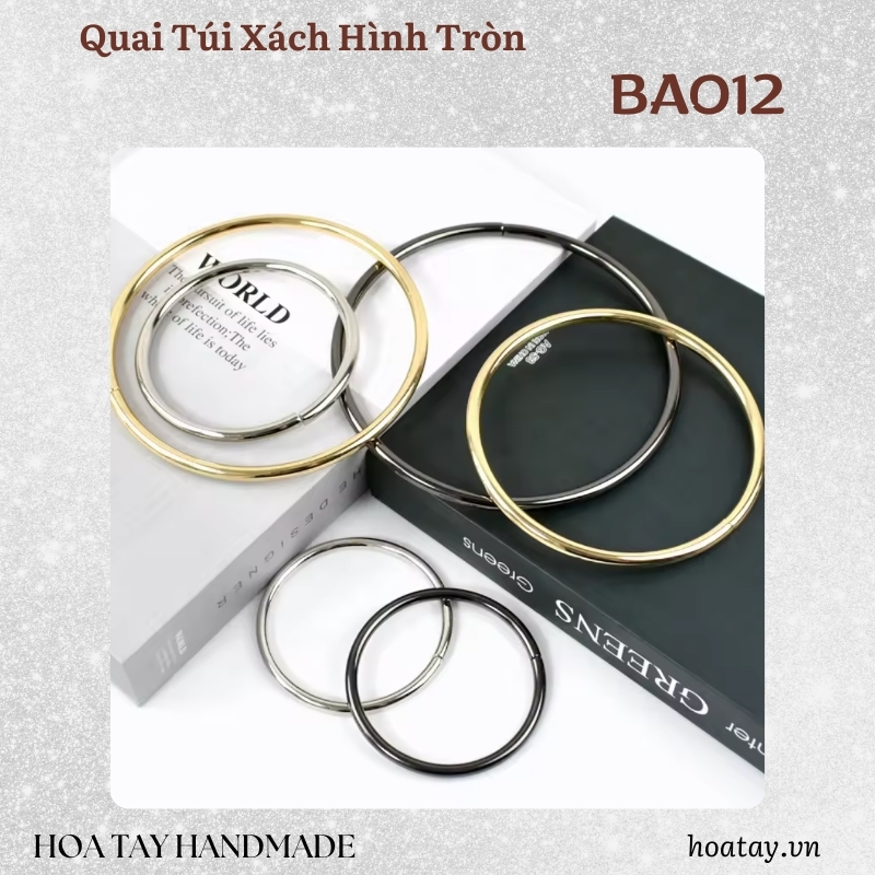Quai túi xách hình tròn BA012 là phụ kiện không thể thiếu dành cho những ai yêu thích phong cách tối giản nhưng vẫn muốn tạo dấu ấn nổi bật. Thiết kế vòng tròn kim loại cứng cáp, bề mặt trơn mịn, cầm chắc tay, mang lại cảm giác sang trọng và thời thượng cho mọi mẫu túi. Sản phẩm có nhiều tông màu kim loại như vàng ánh kim, bạc sáng và xám khói, dễ dàng phối hợp với đa dạng chất liệu như da, simili, vải nhung hoặc canvas.