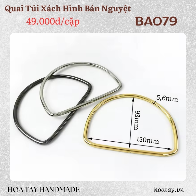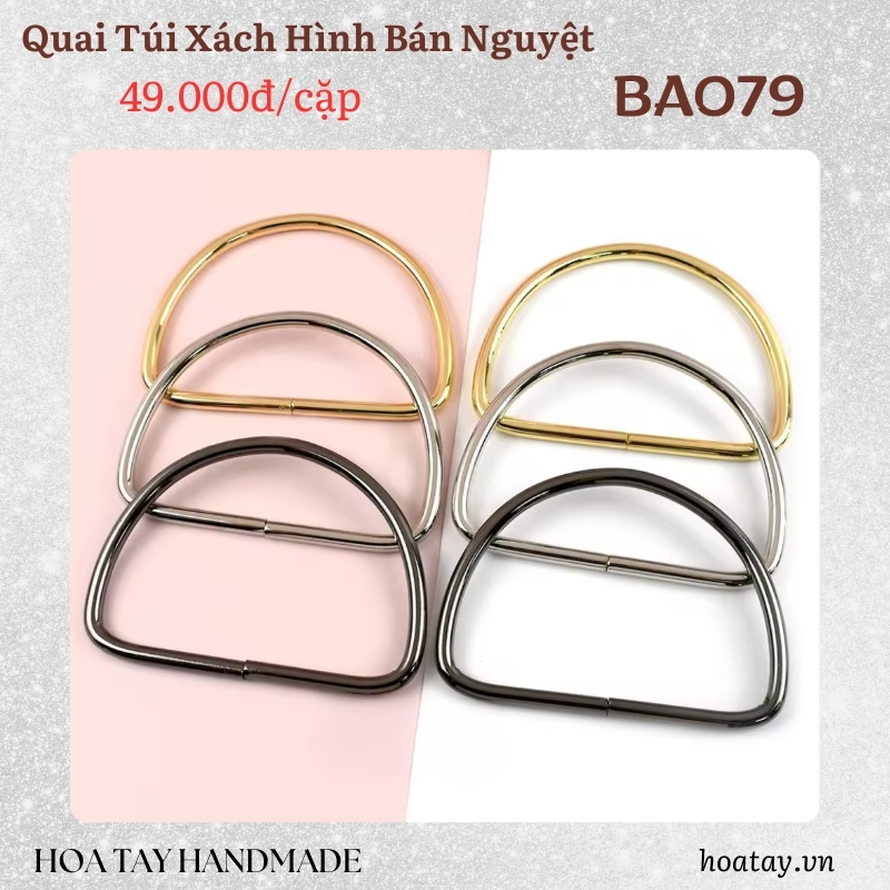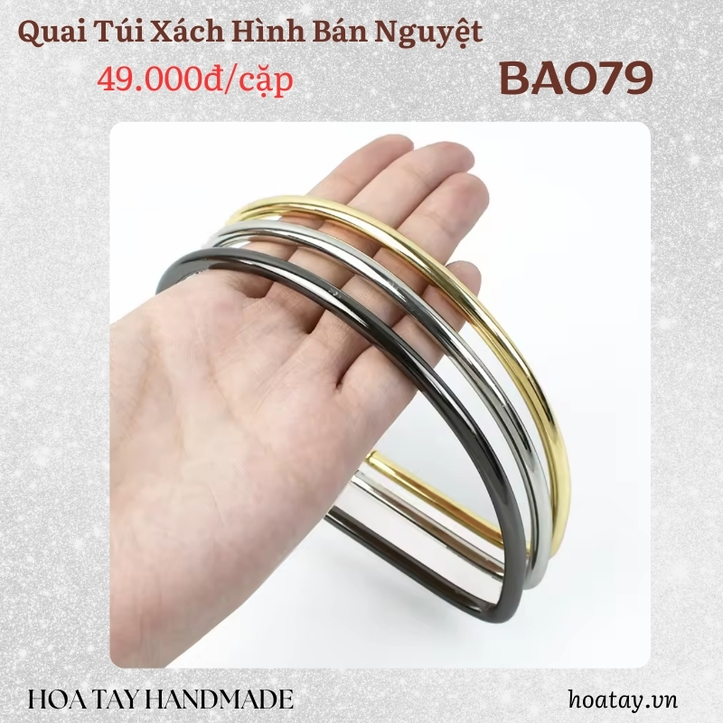 BA079 thường được sử dụng cho túi xách tay dáng mềm, túi vintage, túi dự tiệc hoặc túi thời trang phong cách nữ tính. Khi kết hợp cùng thân túi bo tròn hoặc dáng oval, quai bán nguyệt giúp tổng thể thiết kế liền mạch và cân đối hơn.