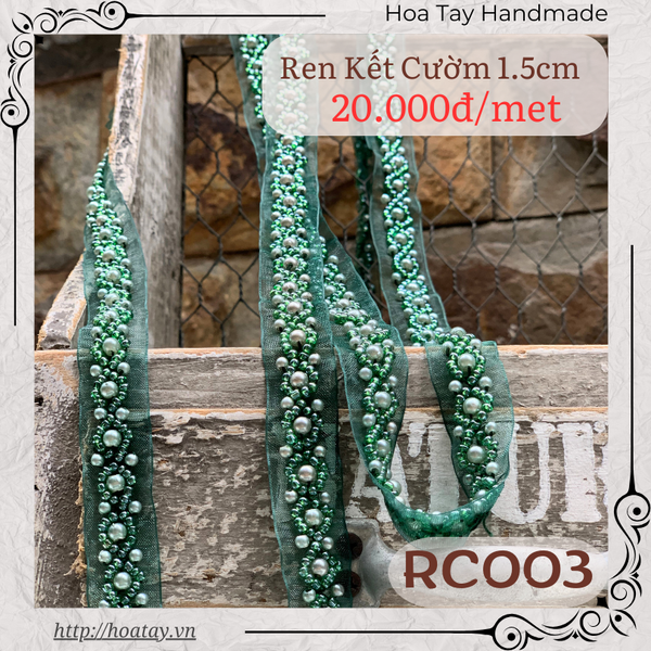 Ruy Băng Voan Kết Cườm Xanh Ve Chai 1.5cm RC003